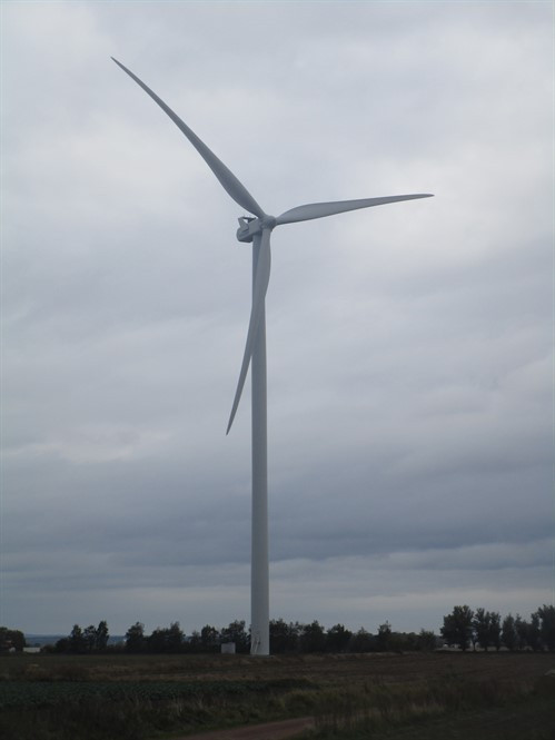 Vestas V100 1,8 MW med en totalhöjd om 145 meter.