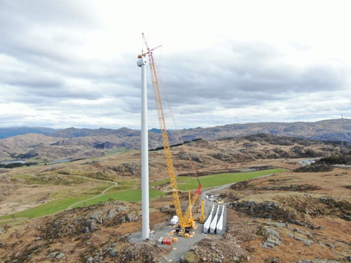 Construction is ongoing in wind farm Stigafjellet in Norway. Yesterday the first nacelle in the wind farm was mounted on the tower. Stigafjellet will be the first wind farm Eolus will complete in Norway. The wind farm will comprise 7 Siemens Gamesa SWT-DD-130 – 4,3 MW turbines with a hub height of 115 meters.